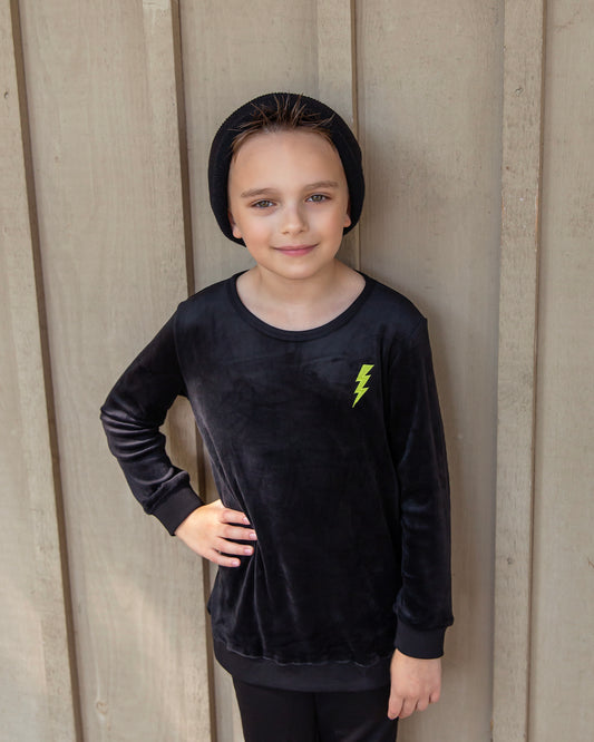 Neon Velour Lightning boys sweater