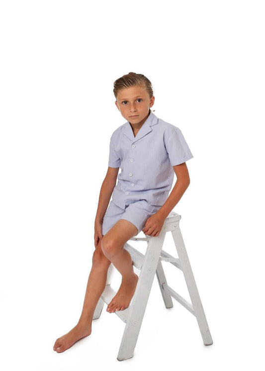 SaleBlue Linen Shorts